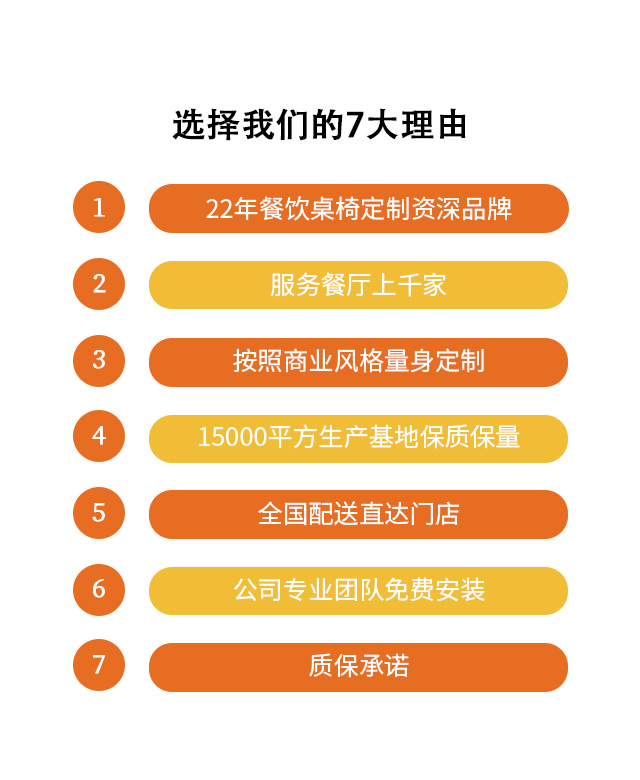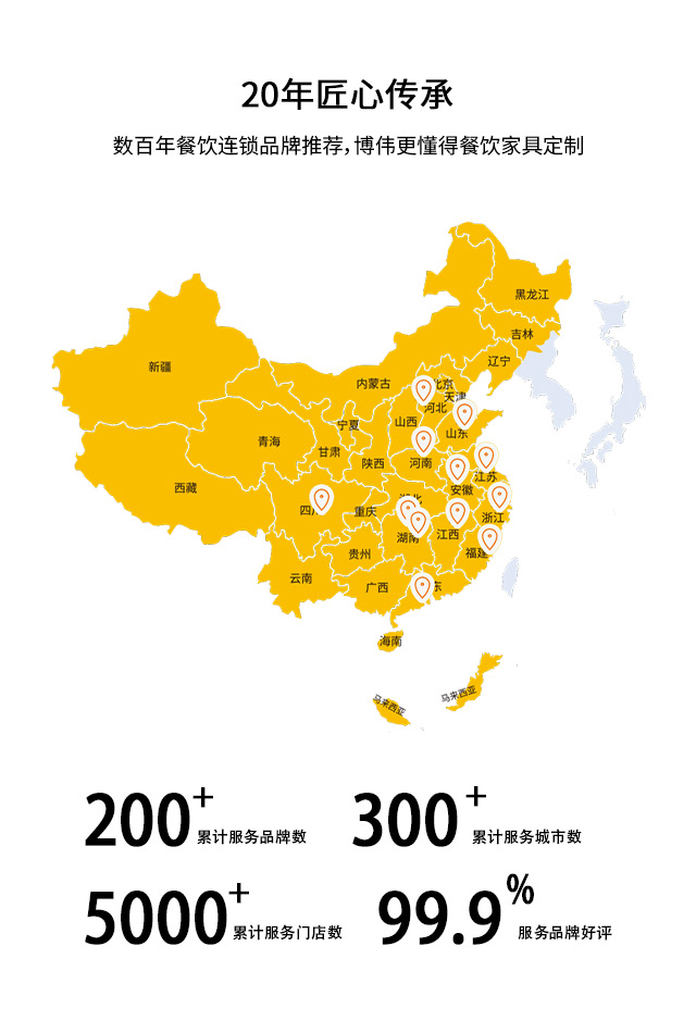 博偉餐飲家具專業(yè)服務餐飲家具20余年,先后服務1000+連鎖餐飲,業(yè)務覆蓋10多個省份300+城市,用好原料做好桌椅,全國質保,注重品質服務。